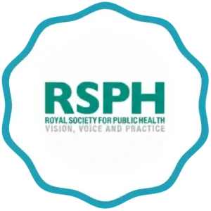 Certified by Royal Society for Public Health standards, demonstrating recognised professional training.